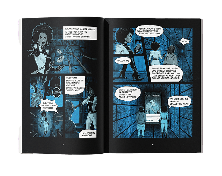 eBay Live asked us to come up with an item that can go into their show bags for all Comic con they are visiting aroun the UK. They needed an item that commuicated what eBay Live is, while being interesting enough that it won't get thrown away. So we made a comic book to connect with the Comic Con community and show the user journey in a more exciting way.